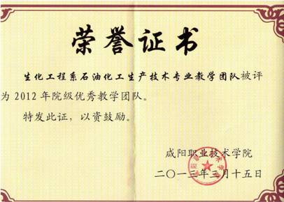 7、石油化工生产技术专业教学团队荣获院级优秀教学团队。