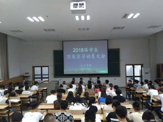 6月22日晚七点半,化工公司在教学楼206多媒体教室,召开2015级员工顶岗实习动员大会,经理侯党社、党总支书记杨健、学发办主任李兴仁、教学办副主任张娟、辅导员纪宗善以及2015级全体员工参加。