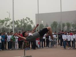 石化1202班郑阳洋100米、跳远分别获得第一名。