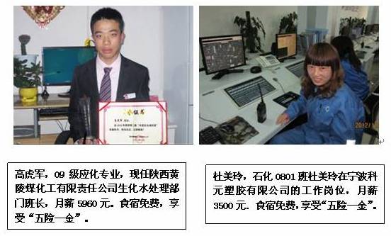 化工公司专业员工就业质量好、稳定性高,毕业生供不应求。近三年来在公司和省教育厅的4次抽查中,公司化工专业员工就业的专业对口率、员工满意率、企业满意率、平均待遇等关键指标均名列前茅。许多毕业生已成为企业骨干。