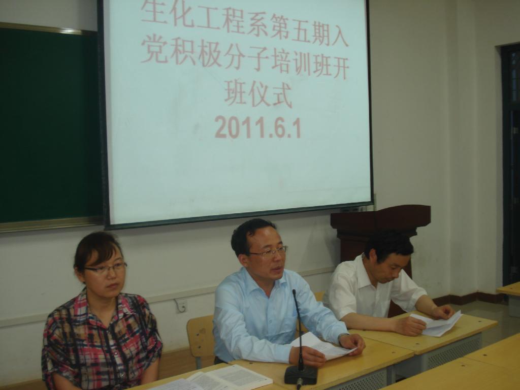 开班仪式上,生化工程系党总支委员李海锋同志宣布了《生化工程系第五期入党积极分子培训方案》,系党总支副书记侯党社同志对学员提出要求:一要明确入党动机,;二要模范地遵守公司的各项规章制度,在各方面起到先锋带头作用;三要按时完成党课培训任务,做好培训笔记,写好培训心得。