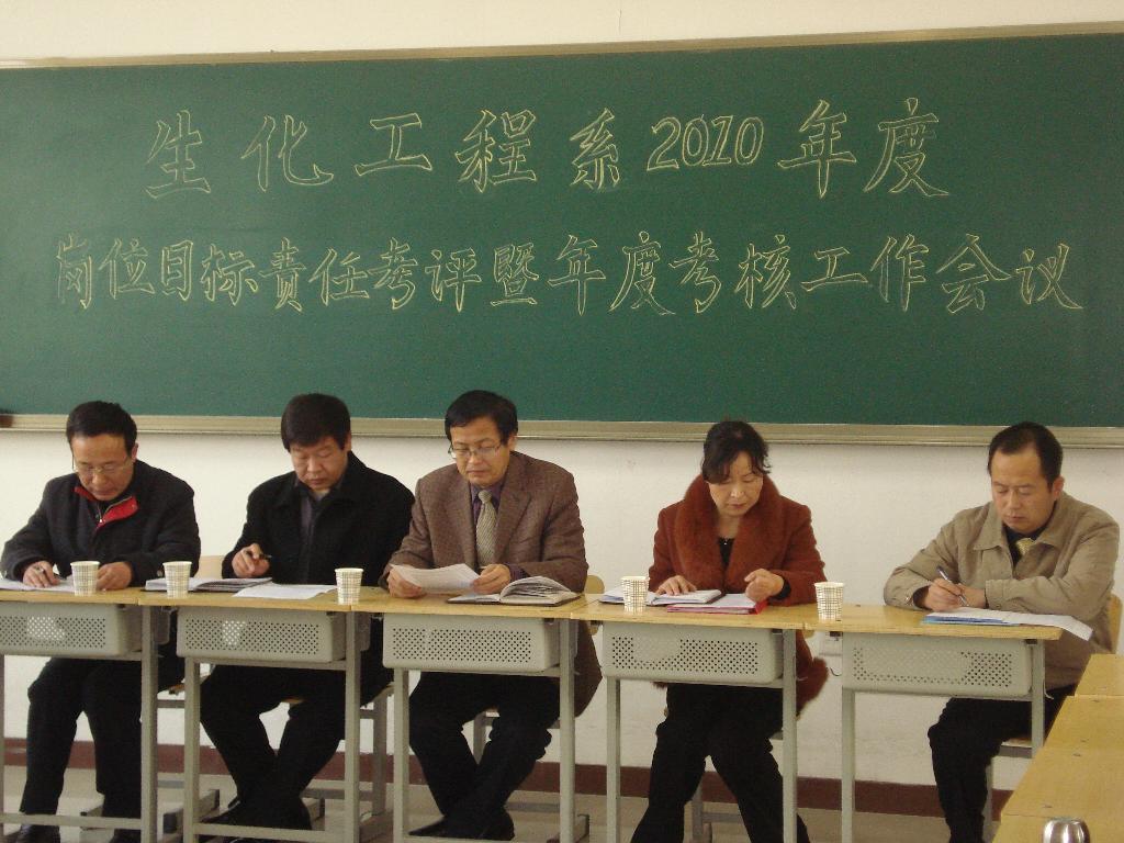 12月30日早,院第五考评小组在副经理樊书生带领下,采取听取系领导汇报、民主测评、查阅资料、个别座谈等形式对生化工程系及系正、副职领导2010年度岗位目标完成情况进行了全面考评,生化系系领导班子、教研室主任、专、兼职教师代表、员工代表共21人参加了会议。
