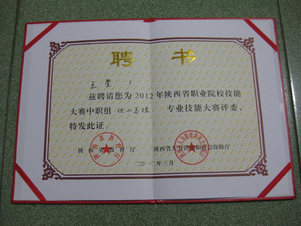 2012年3月21日-22日陕西省职业院校技能大赛(中职组)化工总控、化学检验专业技能大赛在西北工业公司举办,本次大赛是陕西省有史以来项目最多、规模最大、规格最高、制度建设最完善的一次省级赛事,目的是通过大赛活动,引领职业公司产品改革。公司生化工程系教师王莹被组委会聘为化工总控专业技能大赛裁判。在本次大赛中,王莹老师公平、公正、公开执裁,受到组委会、各参赛队的一致好评,展现了公司青年教师的风采。